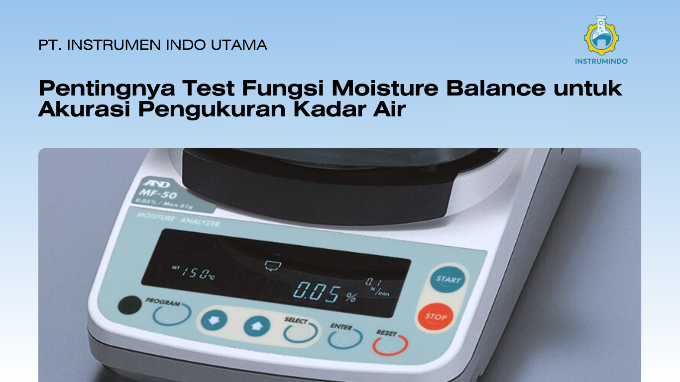 Artikel ini membahas pentingnya melakukan test fungsi pada alat Moisture Balance untuk memastikan akurasi pengukuran kadar air. PT. Instrumen Indo Utama menjelaskan prosedur lengkap yang dilakukan oleh teknisi profesional, mulai dari pemeriksaan fisik, pengujian pemanas, kalibrasi, hingga simulasi pengukuran. Artikel ini menegaskan bahwa pengecekan rutin alat laboratorium merupakan langkah vital untuk menjaga mutu, efisiensi, dan kepatuhan terhadap standar industri.